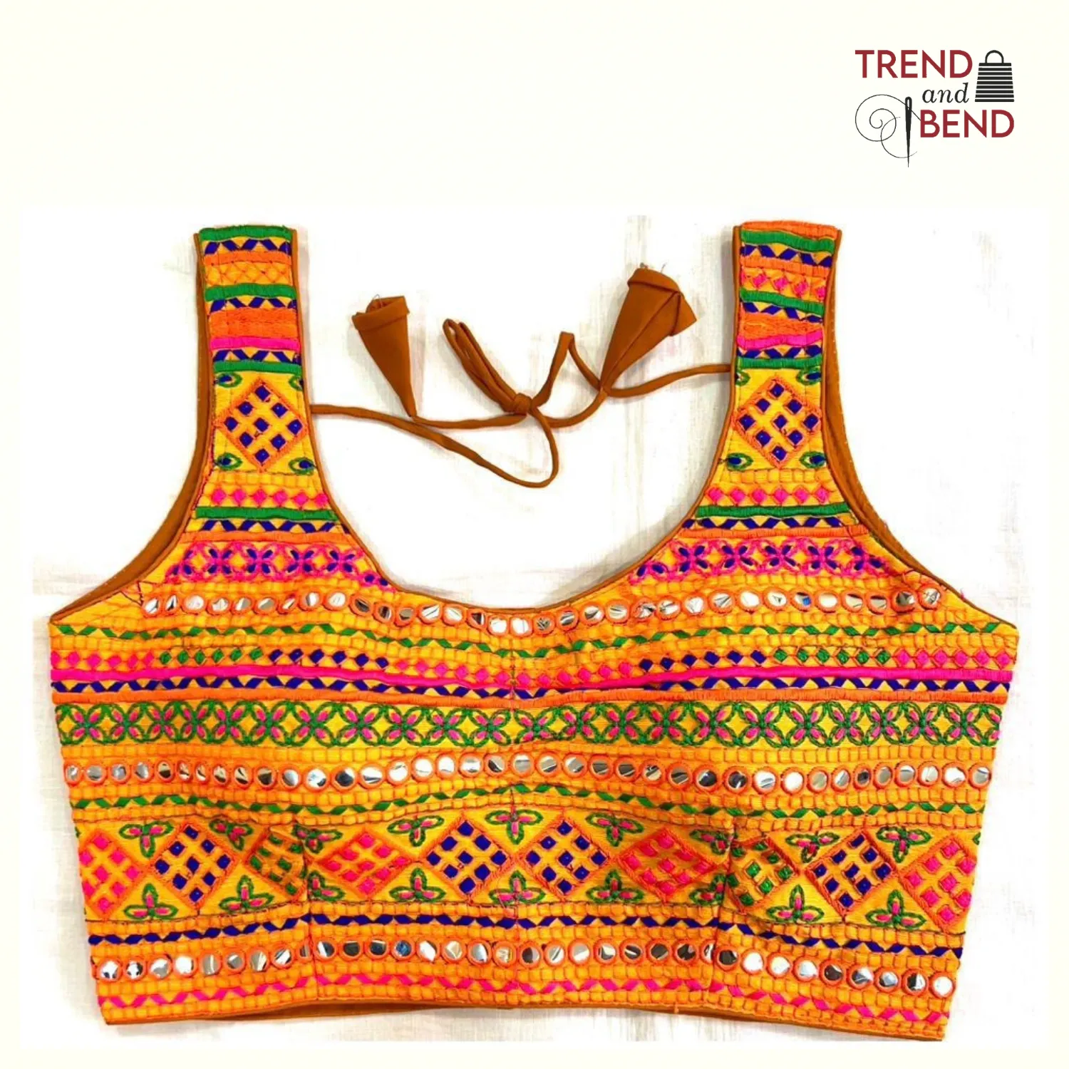 Vibrant Multi-Color Embroidered Orange Base Gujarati Blouse